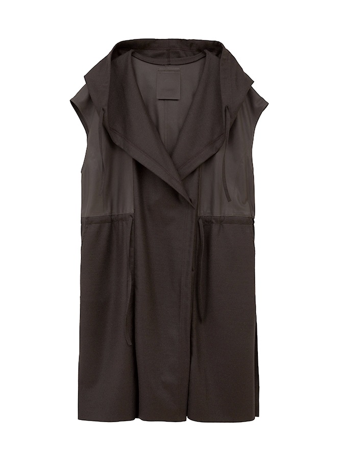 ブランドオリジナルのNew Goat Leatherを使用。ニッティングメルトンとレザーを切り替えフロントのパーツからフードに繋がった大胆なデザイン。フードはかぶらずショールカラーの様にドレープが出る表情も楽しめます。【お手入れについて】素材情報:本体:やぎ革 別布:毛 93% ナイロン7%原産国:韓国