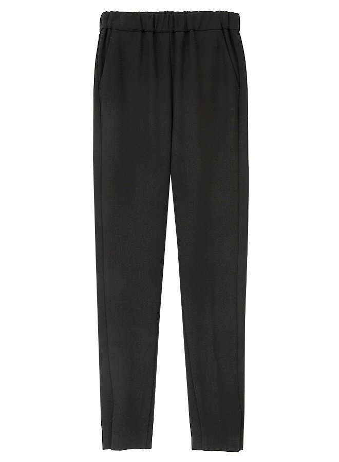 タテとヨコに伸縮する2WAYストレッチの二重織組織の生地を使用。視覚効果により脚が細くみえる様にパンツの脇のラインを追及したスリムパンツ。スリットが深く足の甲にかかり脚長シルエットが強調されます。【お手入れについて】素材情報:[ECRU] 表地:ポリエステル62% レーヨン33% ポリウレタン5% 裏地:ポリエステル100% [BLACK] ポリエステル62% レーヨン33% ポリウレタン5%原産国:日本