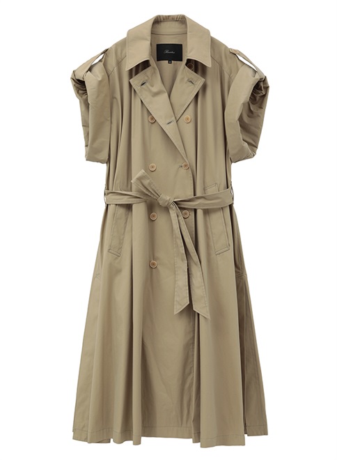 ドライタッチなトルコ産のオーガニックコットンとリサイクルナイロンツイル生地を使用したトレンチコートドレス。トレンチコートとシャツのようなロールアップした袖をMIXしたデザイン。オーバーシャツやジレのように重ね着や、前の釦を閉めて着用する事でコートドレスとしても使える汎用性の高いアイテムです。【お手入れについて】素材情報:綿83% ナイロン17%原産国:中国