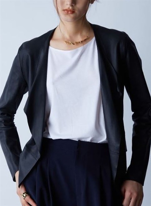 表裏の無いNew Goat Leatherならではの一枚仕立てのカーディガンはブランド誕生時から作り続けているアイコンの定番モデル。No.1005はこのモデルを表すナンバーにもなっています。軽く羽織れるカーディガンスタイルは年間通して幅広い着こなしが出来るアイテムとしてベストセラー商品です。