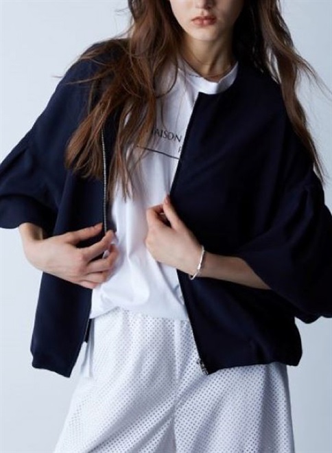 強撚のサラッとした感触でドライタッチなストレッチ素材を使用したバレルスリーブジャケット。樽のような見た目から「バレルスリーブ」と呼ばれるボリュームのる袖がデザインのポイントとなり、肘までたくしあげて着こなすことで、よりボリューム感が感じられるシルエットに変化します。【お手入れについて】素材情報:(メイン)ポリエステル100%(部分)ポリウレタン60% ポリエステル40%原産国:日本
